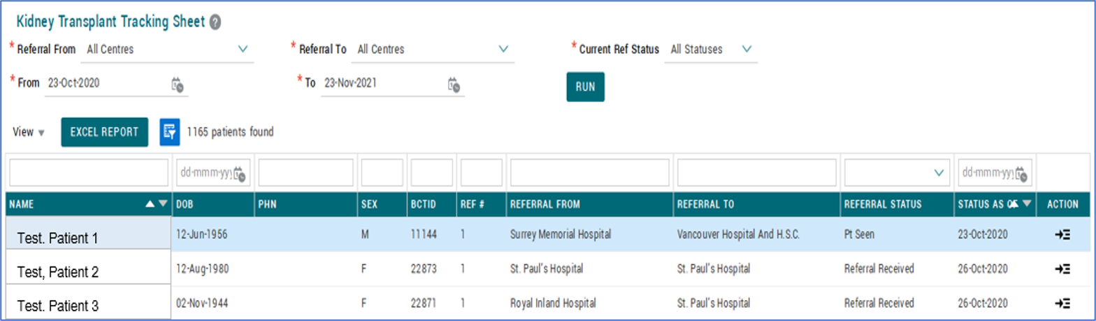 • KCC and BCT practitioners and nurses can view the list of patients who are currently enrolled or prepared for kidney transplant.