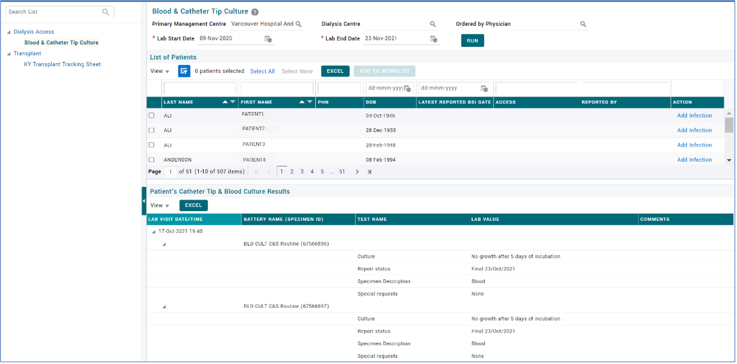 PROMIS 4 > Patient Lists > Dialysis Access > Blood & Catheter Tip Culture