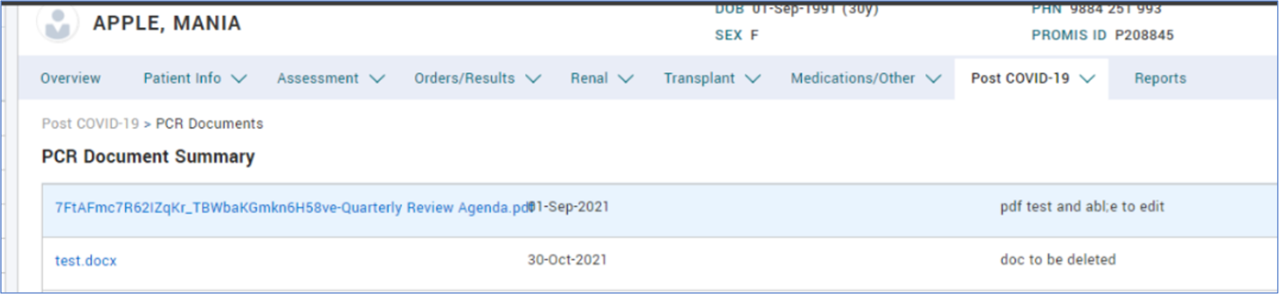 PROMIS 4 > Patient Chart > Post COVID-19 > PCR Documents