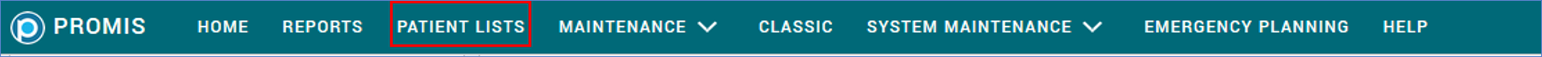 • Patient Lists: Patient Lists can be viewed, searched and navigated through using the Patient List tab on the top navigation bar.