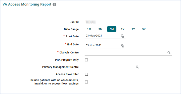 PROMIS4 > Reports > Centre Reports > Dialysis Access > VA Access Monitoring