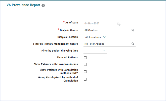 PROMIS4 > Reports > Centre Reports > Dialysis Access > VA Prevalence Report
