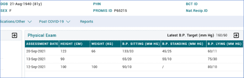 • Blood pressure information updated for Virtual Care to include Home monitoring data or whether the patient was unable to obtain the information.