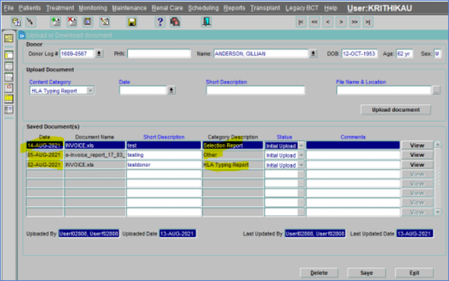 • When populating a Selection Report, manually select content category as ‘HLA Typing Report’. This category is mostly used by VGH Immunology Lab. Older attachments entered in this category will continue to be visible with Content Category as ‘Immunology Report’.