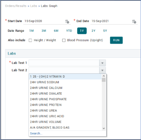 • A scroll bar has been added to the Lab Test 2 drop-down menu in Labs Graph.