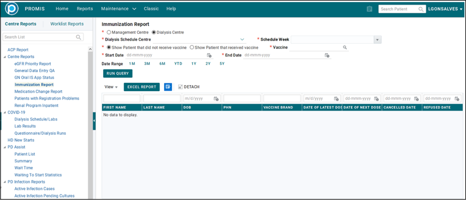 - Immunization Report: identifies patients who have/did not have a specific type of immunization for a specified date range. This report can be generated at center level or for the entire patient list.